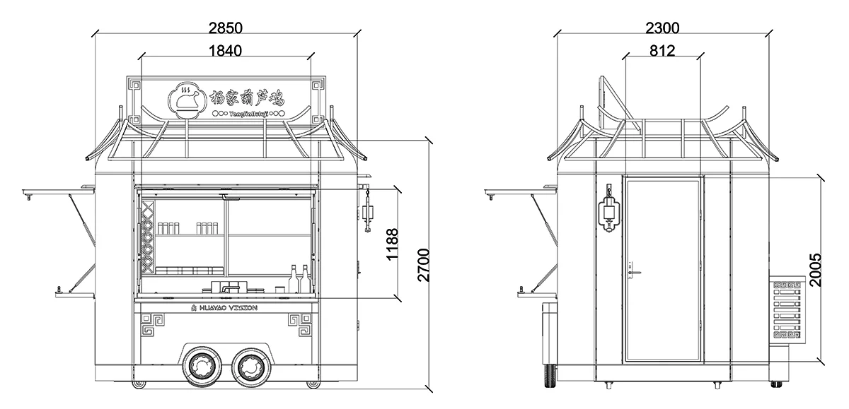 Coffee Food Trailer utitur gravi officio chassis chassis structurae, quae glutino et anti- imbre curatione roborata est, paribus ratio suspensarum qualitatum et fatigatio repugnantis, ut idoneus ad trahendum ac stabilem ac durabilem ad usum, ad varias condiciones viae ut circulos, scenicas maculas, officium structurae circumstantium, inserviens vita plusquam 10 annorum. Raeda corpus coopertum est materia corrosioni-resistenti, sustinentes notam capulus adaptationem et LOGO csscationem; interiores usus 304 graduum ciborum incorrupta tabulata ferro, cum materia velitatione in medio strato referta, et anti-lapsum INCILE contignationem attentis hygiene operandi et stabilitatem in ambitus efficiendi capulus.